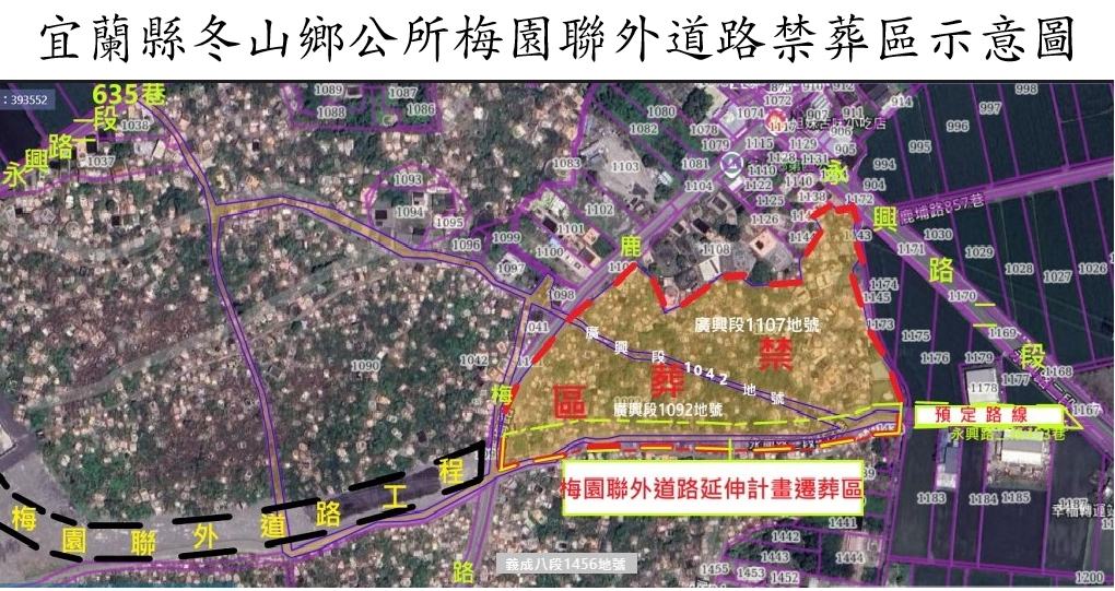 宜蘭縣冬山鄉第四公墓用地部分範圍禁葬公告、禁葬地號之地籍謄本、地籍圖及位置示意圖