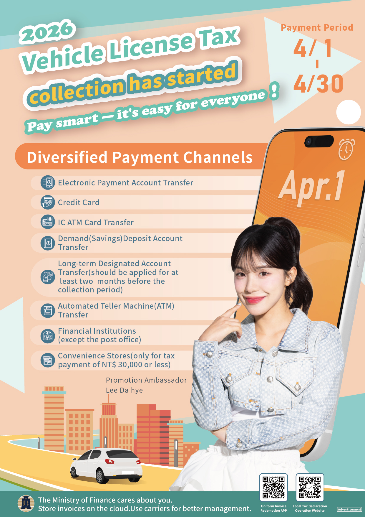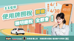 提醒納稅義務人如期繳納115年度使用牌照稅(115年度使用牌照稅繳納期間為4月1日至4月30日)